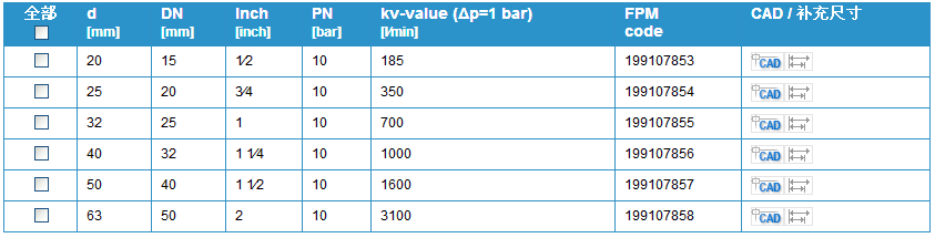 閥門個別配置(參見表格)